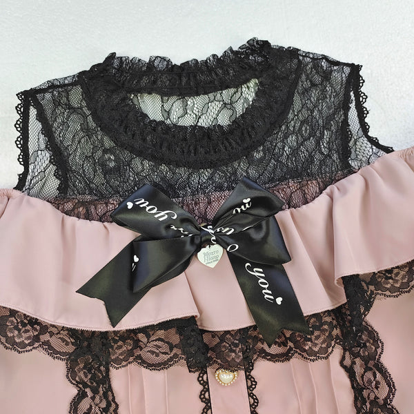 Kawaii Lolita Long Sleeve Blouse with Lace Trim Peter Pan Collar Cotton Shirt