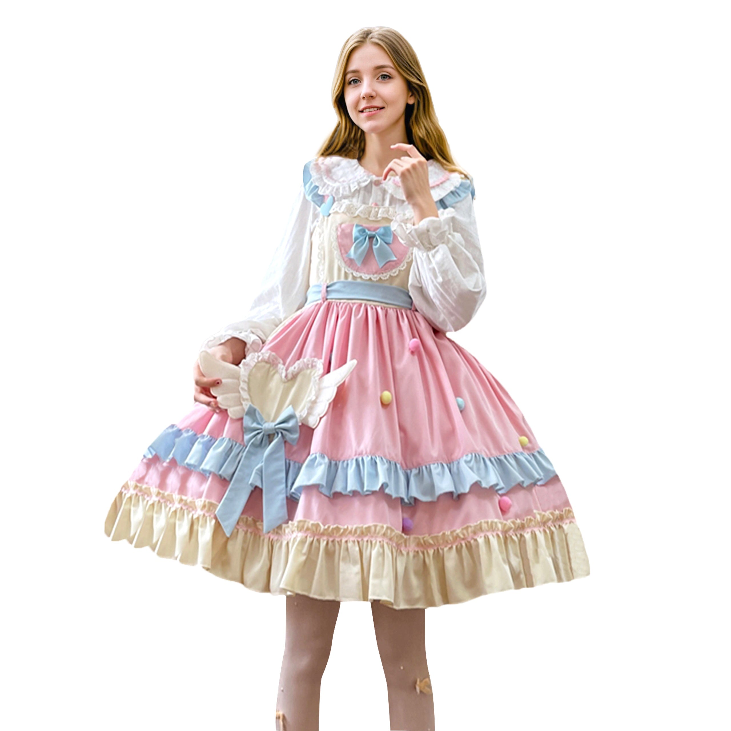 Big Strawberry Pattern Loose Plaid Apron for Woman Sweet Doll Collar Dress Apron