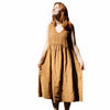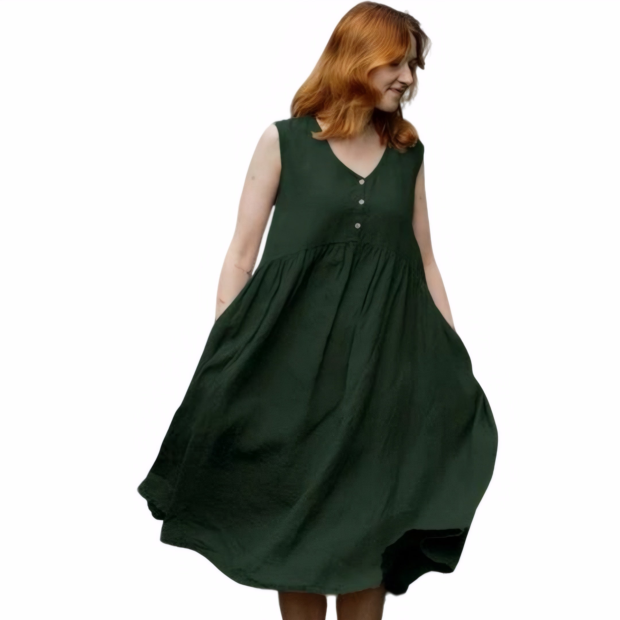 2025 Summer 100% Linen Sleeveless Dress V-Neck Loose Midi Sundress with Coconut Buttons
