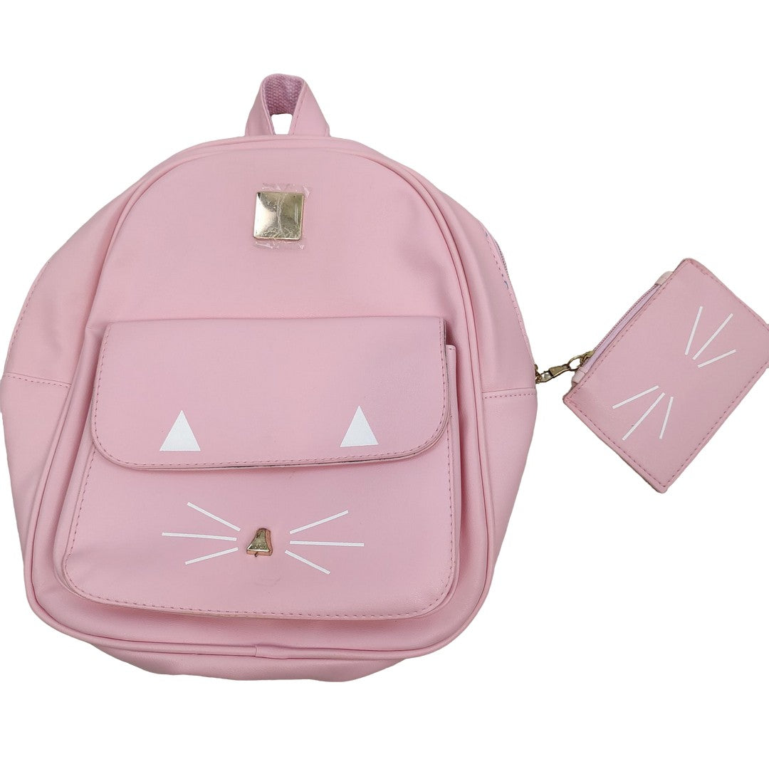 Kawaii Pink Cat Face Mini Backpack PU Leather Cute Kitty Bag with Ears Whiskers