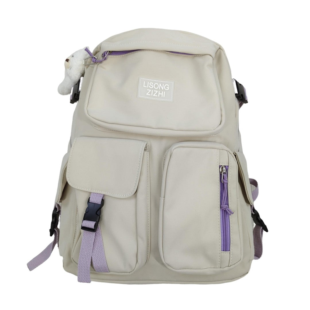 Clearance Beige Multi-Pocket Backpack Good Quality Canvas Travel & School Bag