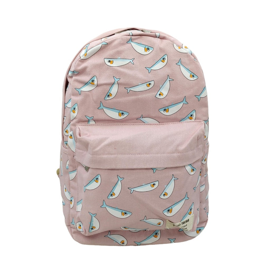 Cute Fish Print Canvas Backpack for Teens Student Lightweight School Travel Bag