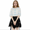 Kawaii Half Sleeve White Shirt Women With Heart Pattern Bow Button Doll Collar Streak Tops