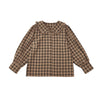 Brown plaid long sleeve blouse with Peter Pan collar and button-down front, vintage cottagecore style shirt for girls