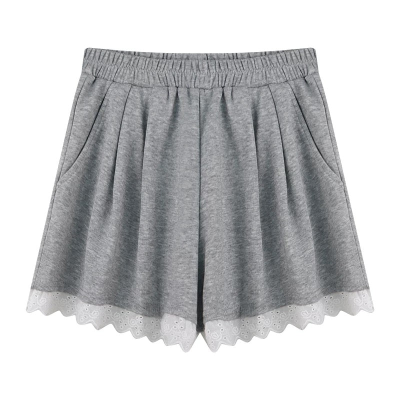 Kawaii Cat Paw Print Cotton Shorts Soft High Waist Lounge Shorts with Drawstring