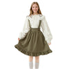 Japanese Sweet Ruffle Suspender Skirt Army Green High-Waist Half Skirt with Bows