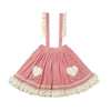 Kawaii Pink Suspender Skirt with Heart Pockets and Ruffle Trim Sweet Lolita Style