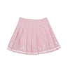 Pink pleated mini skirt with white bunny and heart embroidery on hemline