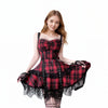 Gothic Red Plaid Suspender Dress Punk Lace Trim Corset A-Line Mini Skirt for Women