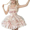 🎀 Step into a fairytale world with this adorable Lolita ruffle dress, perfect for tea parties, cosplay events, or romantic dates!Womens empire waist sweet sleeveless vintage frilly casual A-line elegant court lace up anime Halloween cosplay cottagecore ruffled big swing puffy dresss