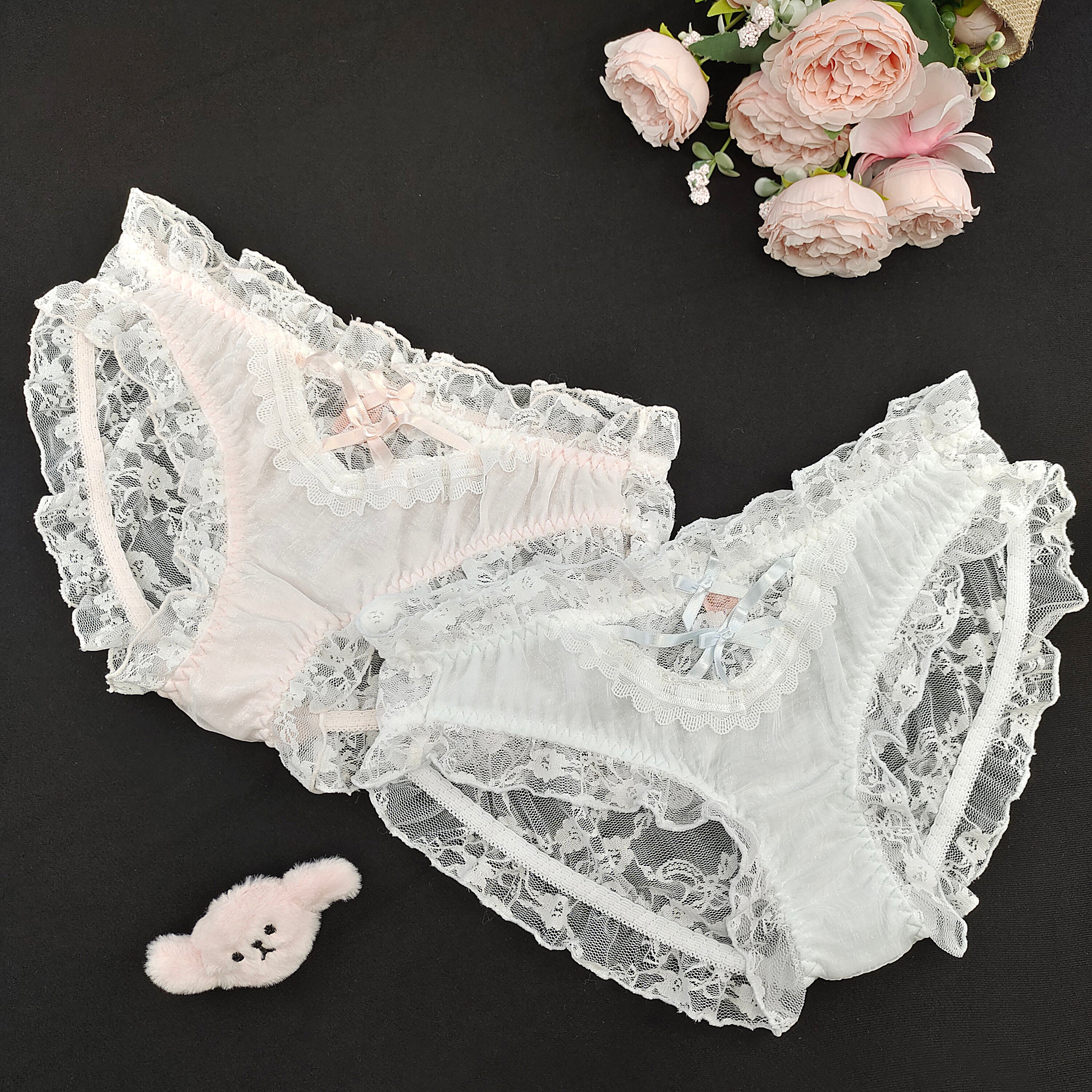 Woman's Brief with Bow Good Quality Floral Embroidered Lace Briefs 2 Packs