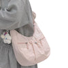 Cute Pink Nylon Shoulder Bag for Women Normal Capacity Casual Hobo Bag Double Zippers