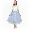 Long Elastic Waist Calf Length Ruffled Hem Pleated All-match Skirt Blue Plaid with Lace Edge